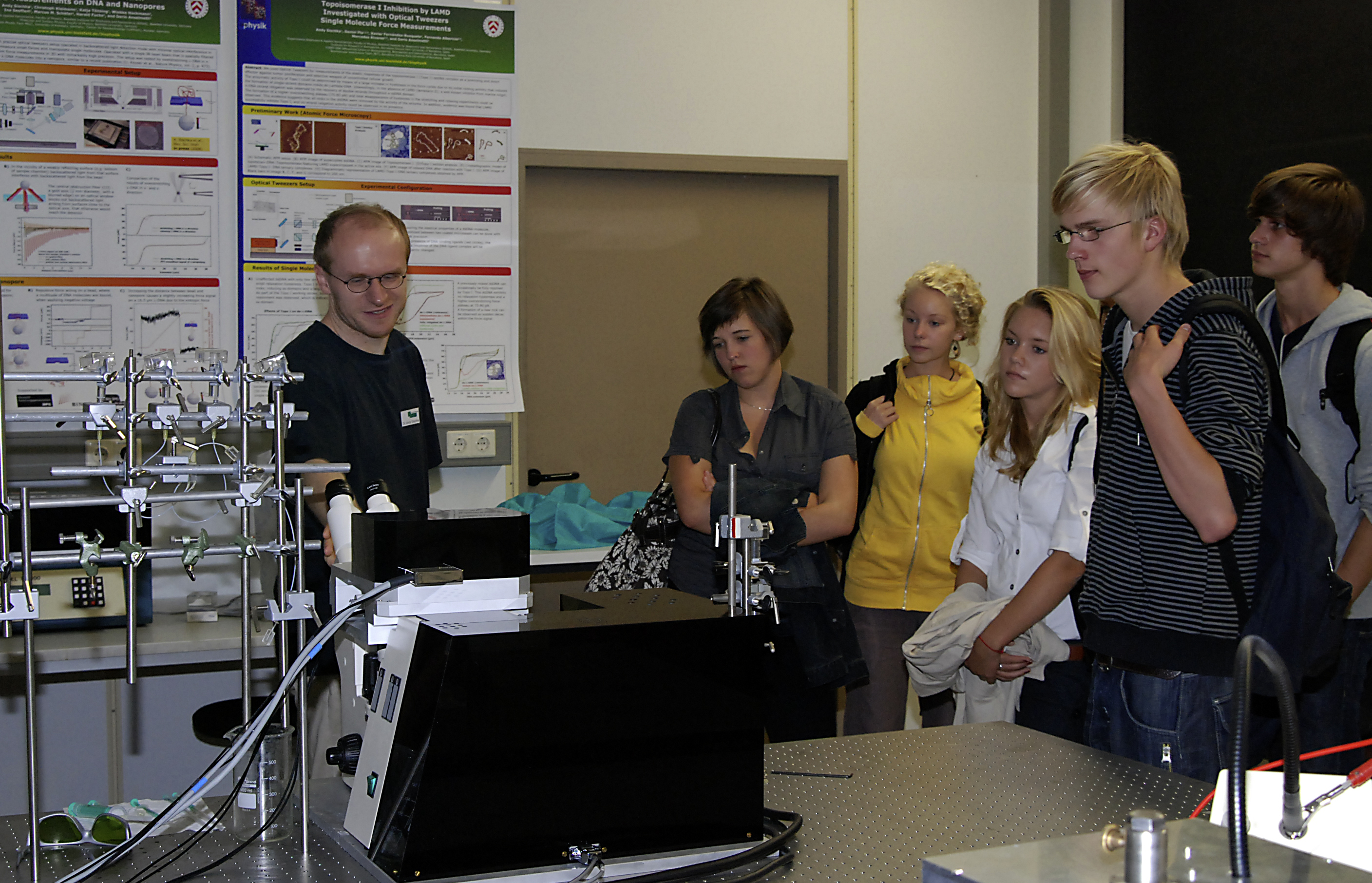 An drei Tagen haben physikinteressierte Schülerinnen und Schüler der Stufen 10 bis 13 Gelegenheit etwas mehr über Physik und das Studium an der Universität Bielefeld zu erfahren. Unter dem Motto "Wir haben doch keine Zeit!" ging es beispielsweise um folgende Fragen: Woher wissen wir wie lange es dauert, bis ein Molekül auf einen Lichtblitz reagiert oder ein Stern entsteht? Wie lange braucht man eigentlich, um mit Hilfe von Computersimulationen Vorhersagen über das Weltklima in hundert Jahren machen zu können?