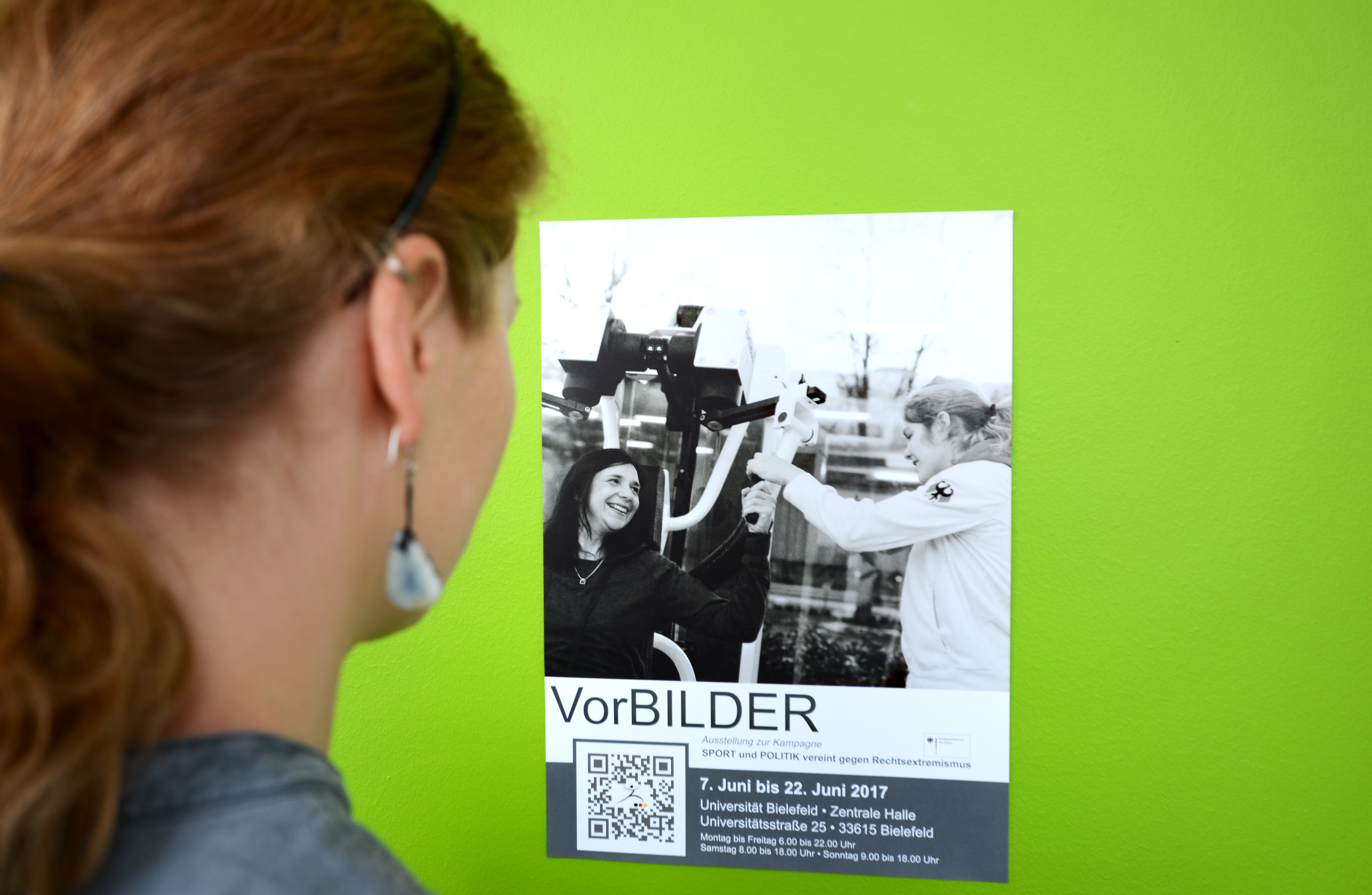 Politik und Sport: So unterschiedlich die Disziplinen, so eint doch Menschen aus beiden Bereichen der gemeinsame Wille, gegen Ausgrenzung, Rassismus und Extremismus einzutreten. Doppelporträts von Politikerinnen oder Politikern mit Sportlerinnen oder Sportlern, die dabei „VorBILDER“ sein wollen, zeigt eine gleichnamige Wanderausstellung. Die 33 Meter lange Fotoinstallation wird am Mittwoch, 7. Juni, in der Halle der Universität Bielefeld eröffnet. Neben Kurzinterviews im Rahmenprogramm der Eröffnung können Interessierte sich bei der interaktiven Fotoaktion MeinungsBILDER auch selbst an der Ausstellung beteiligen.