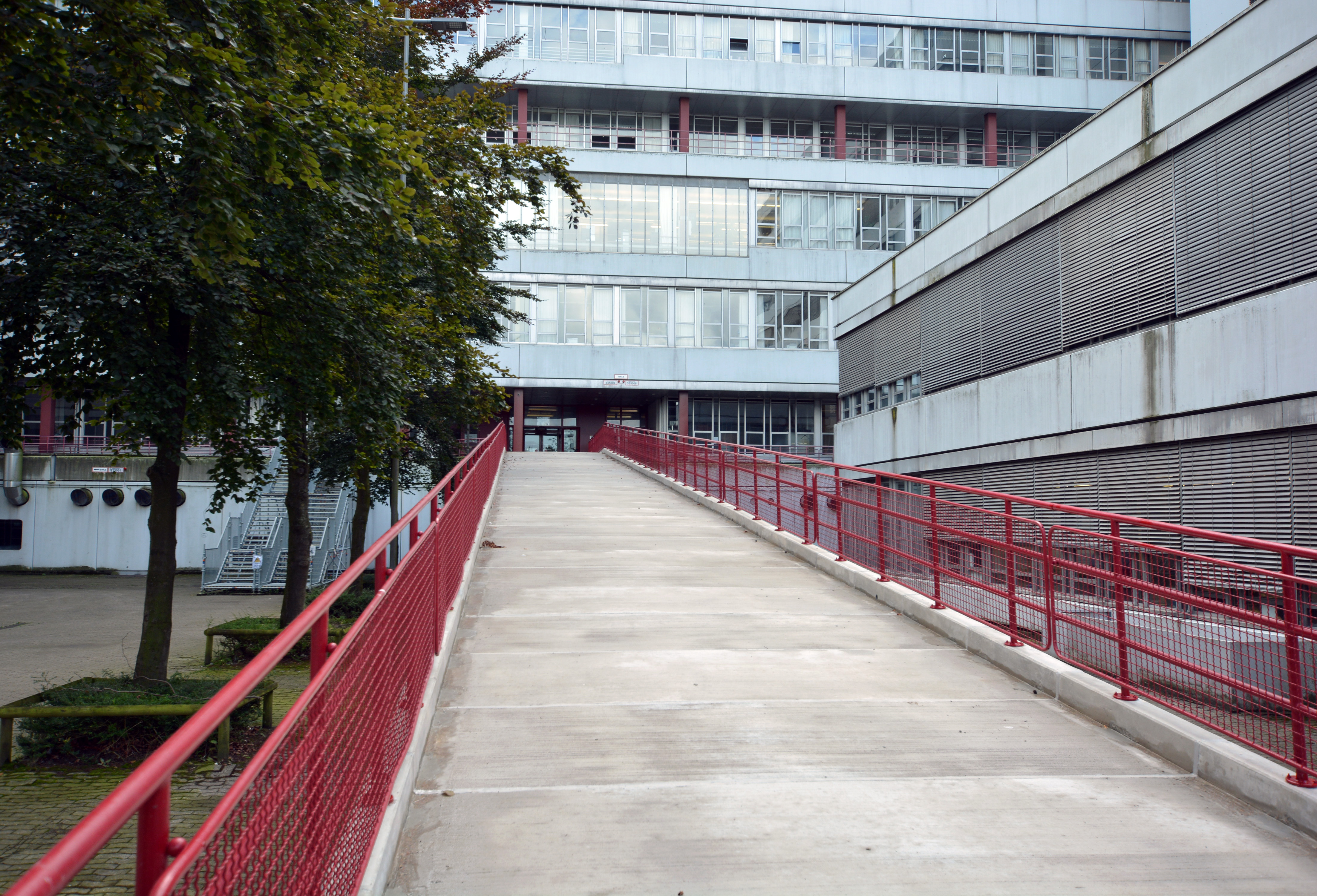 Der Bau- und Liegenschaftsbetrieb BLB (NRW) hat die Sanierung der drei Rampen zwischen den Zähnen an der Unteren Randbedingung abgeschlossen. Die Rampen können nun wieder genutzt werden. Auch die Fahrradständer unter den Rampen stehen wieder zur Verfügung. Für die Zeit der Sanierung hatte der Bauherr die Rampen gesperrt und Ersatztreppen aufgestellt. Lieferprobleme der Herstellerfirma und mangelhafte Betonteile hatten zu zeitlichen Verzögerungen der Sanierungsmaßnahme geführt.