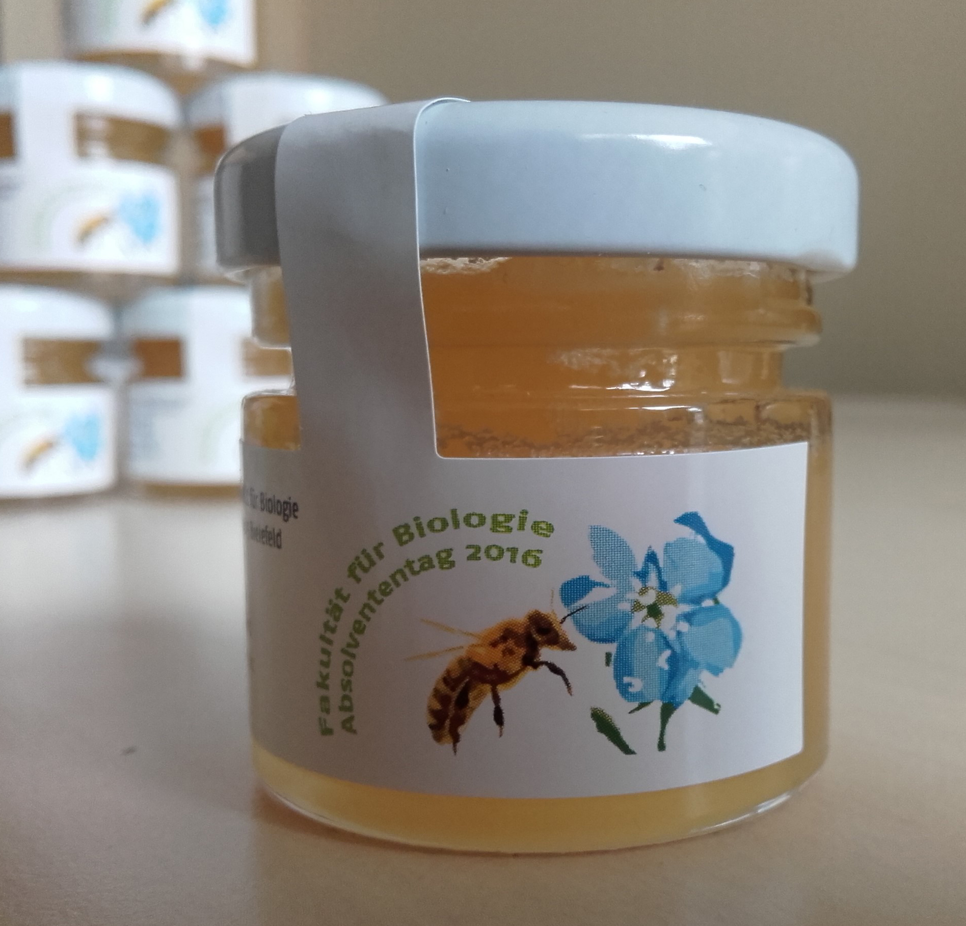 Absolventen-Tasse sowie ein kleines Glas mit Honig, den die