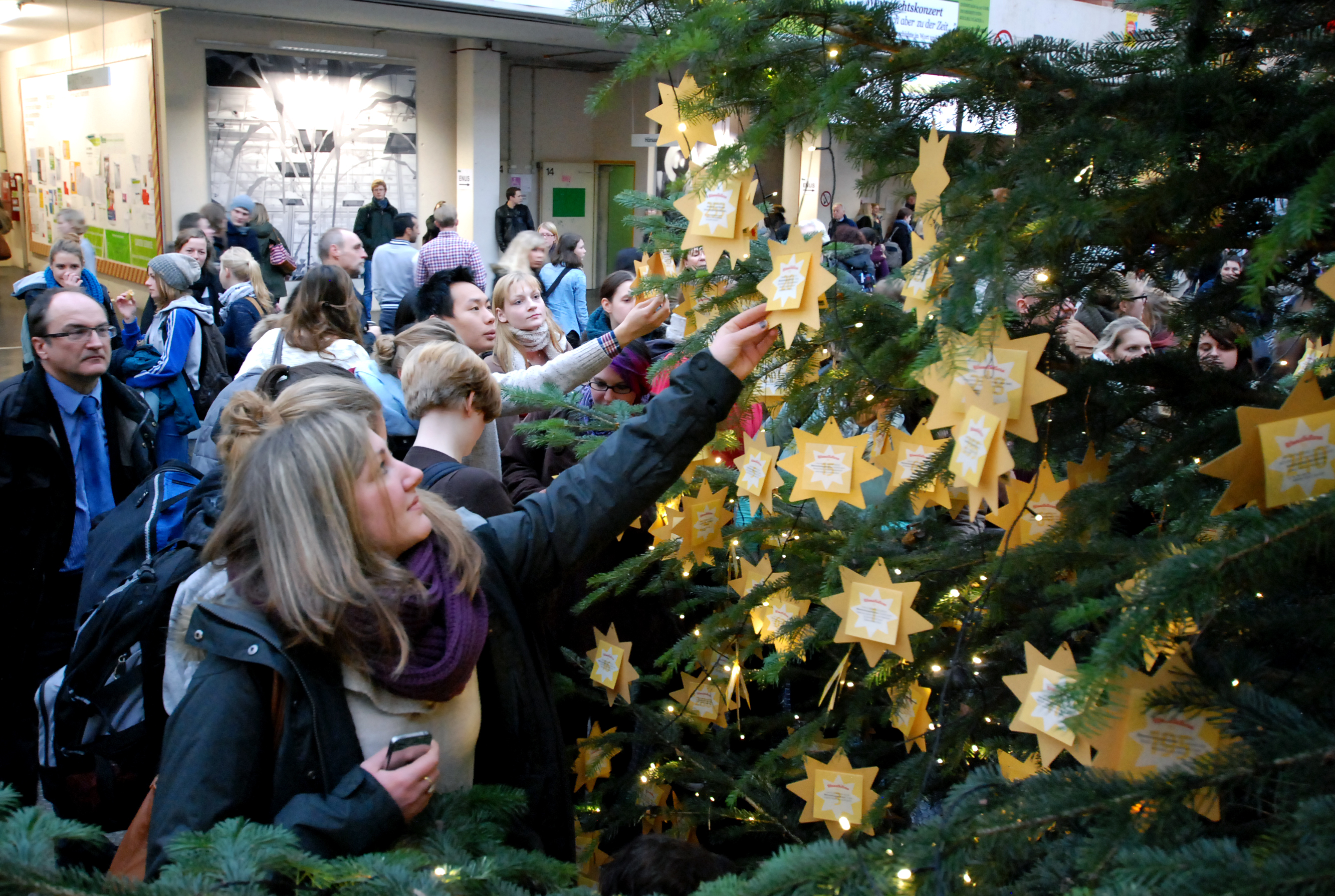 Nicht unter einem, sondern unter mehr als 400 guten Sternen steht in diesem Jahr die Wunschsternaktion der Universität Bielefeld und der von Bodelschwinghschen Stiftungen Bethel. Circa 100 Wünsche mehr als im vergangenen Jahr von Kindern, Jugendlichen und Erwachsenen aus den unterschiedlichen Einrichtungen Bethels werden bis Weihnachten in der zentralen Uni-Halle an goldenen Sternen hängen. Studierende, Mitarbeiterinnen und Mitarbeiter der Universität sowie Besucherinnen und Besucher können diese Wünsche „pflücken“ und erfüllen. Darunter ist der Wunsch nach einem Puzzle oder Memory-Spiel genauso wie der Besuch einer Katzenausstellung oder der mobiel-Schaltzentrale.