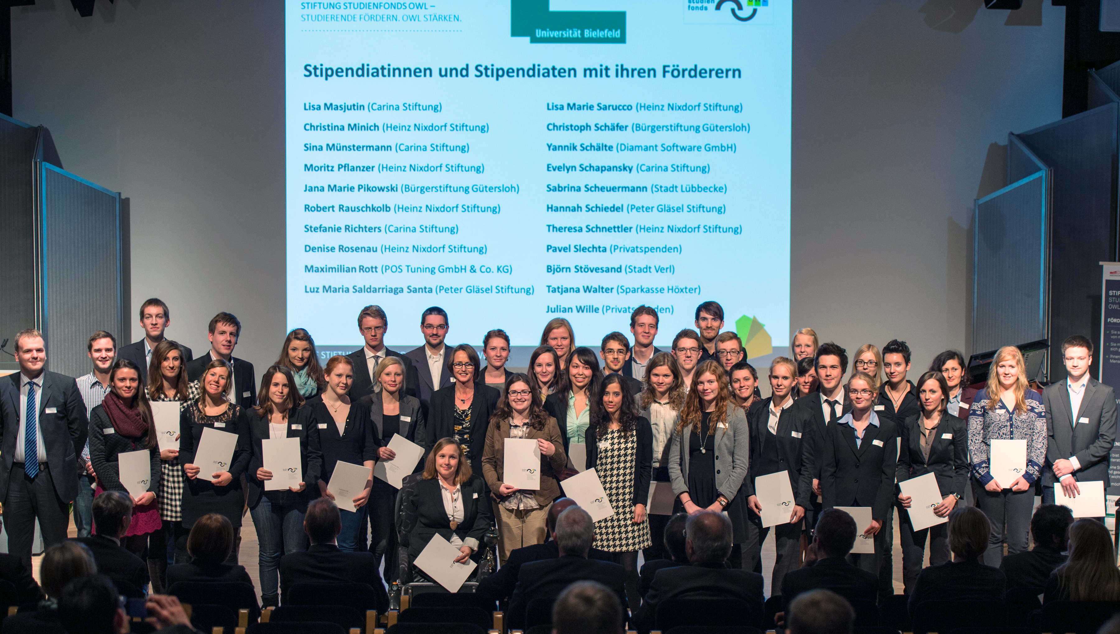Einen finanziellen Part des Stipendiums übernimmt der Bund, den anderen ein Förderer. Zudem erhalten die Stipendiaten beim Studienfonds OWL neben der finanziellen auch eine ideelle Förderung, so können die begabten Studierenden unter anderem Einblicke in Unternehmen erhalten, an Workshops, aber auch gemeinsamen kulturellen Ausflügen oder Aktivitäten wie Kanutouren teilnehmen. „Unsere Förderung ist deutschlandweit einzigartig“, berichtet Professor Nikolaus Risch stolz und freut sich, „dass in diesem Studienjahr der 1000. Stipendiat in die Förderung aufgenommen wird.“ Zuletzt wurde die Stiftung Studienfonds OWL vom Stifterverband für die deutsche Wirtschaft mit dem Preis für das bundesweit beste ideelle Förderprogramm ausgezeichnet.