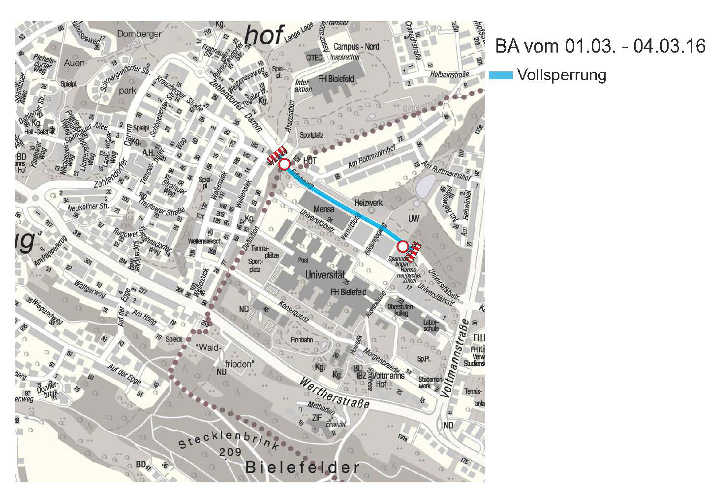 In den kommenden Wochen der vorlesungsfreien Zeit werden an der Universität Straßenbauarbeiten stattfinden. Auf der Erfahrung und der dem Spannungsbogen werden abgetrennte Streifen für Fahrradfahrer angelegt. Die Bauabschnitte erfordern unterschiedliche Sperrungen und Umleitungen. Witterungsbedingt haben sich die Straßenbauarbeiten an der Erfahrung/Universität verzögert.