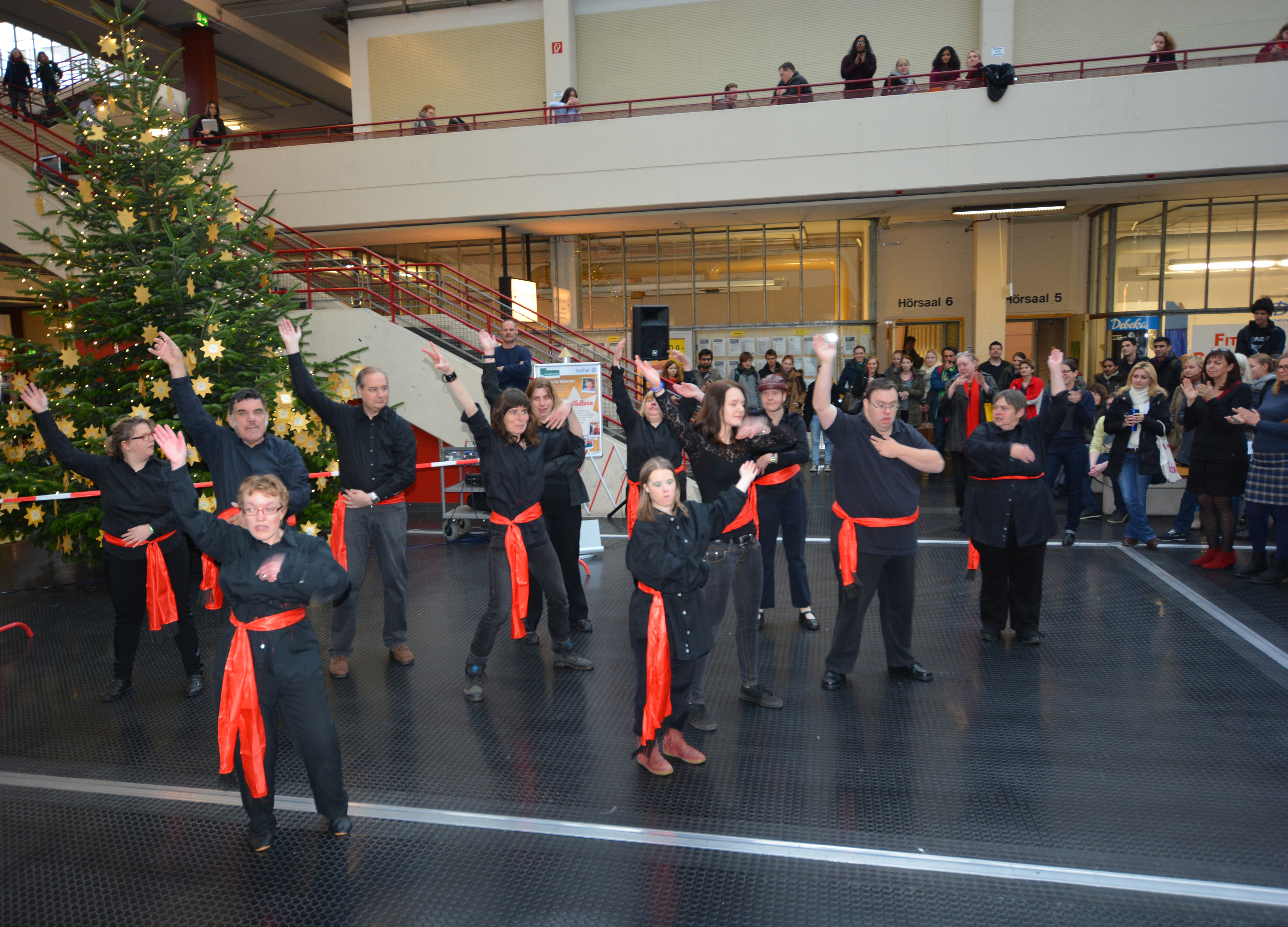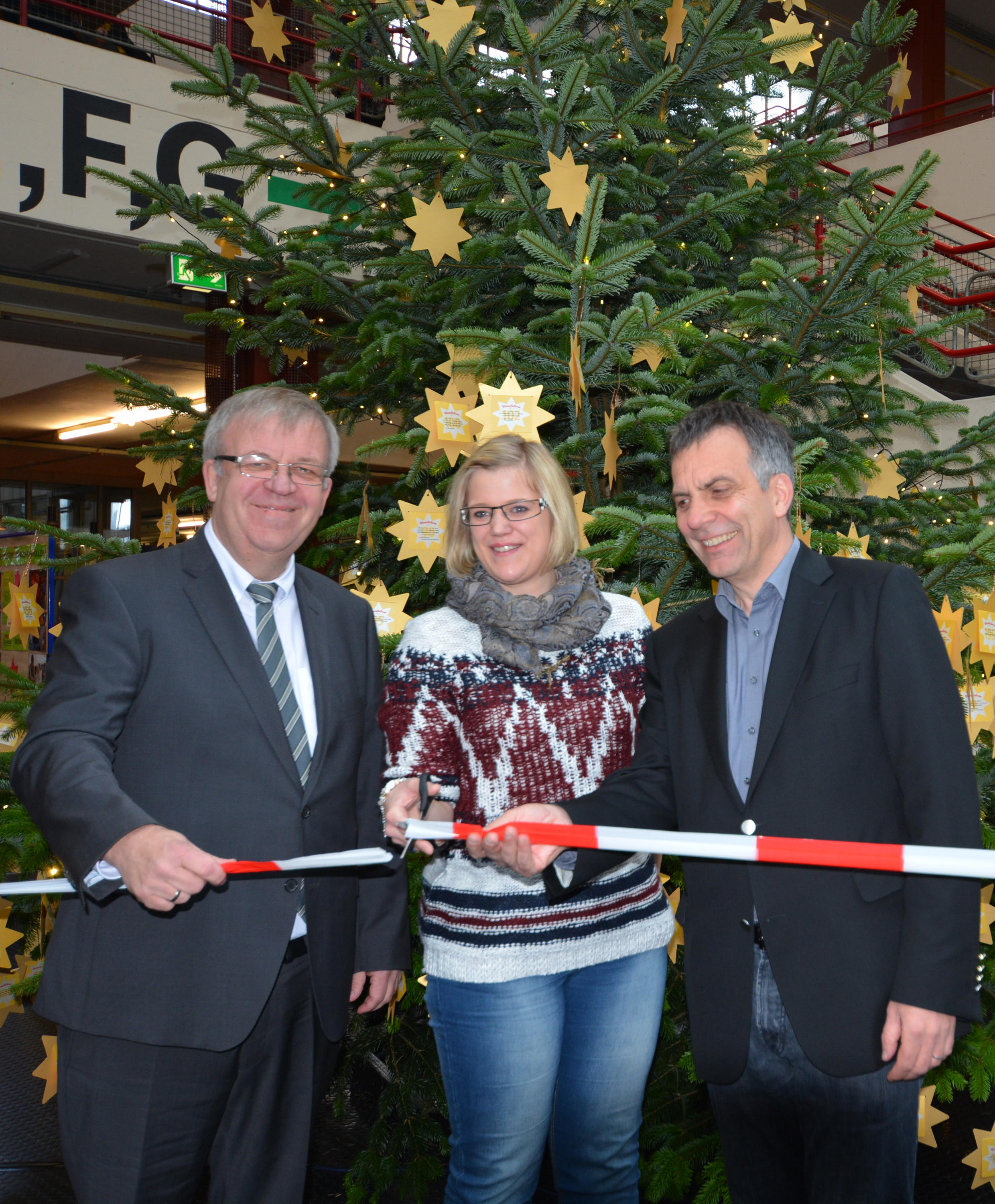 Am Mittwoch, 26. November, hat die traditionelle Wunschstern-Aktion der Universität und der von Bodelschwinghschen Stiftungen Bethel begonnen. Ein Weihnachtsbaum in der Uni-Halle, jetzt erstmals vor dem Westend, ist wieder mit vielen goldenen Wunschsternen geschmückt. Studierende, Mitarbeiterinnen und Mitarbeiter der Universität sowie Besucherinnen und Besucher können die Wunschsterne in der Vorweihnachtszeit „pflücken“ und erfüllen. Das Erlebnis zur Eröffnung: die Musicaltanzgruppe der Neuen Schmiede in Bethel führte ein Tanzmedley auf. Danach schnitten Professor Dr.-Ing. Gerhard Sagerer, Rektor der Universität Bielefeld, Pastor Ulrich Pohl, Vorstandsvorsitzender der von Bodelschwinghschen Stiftungen Bethel, und Leonie Stotz, Studierende an der Universität Bielefeld, das Band durch.