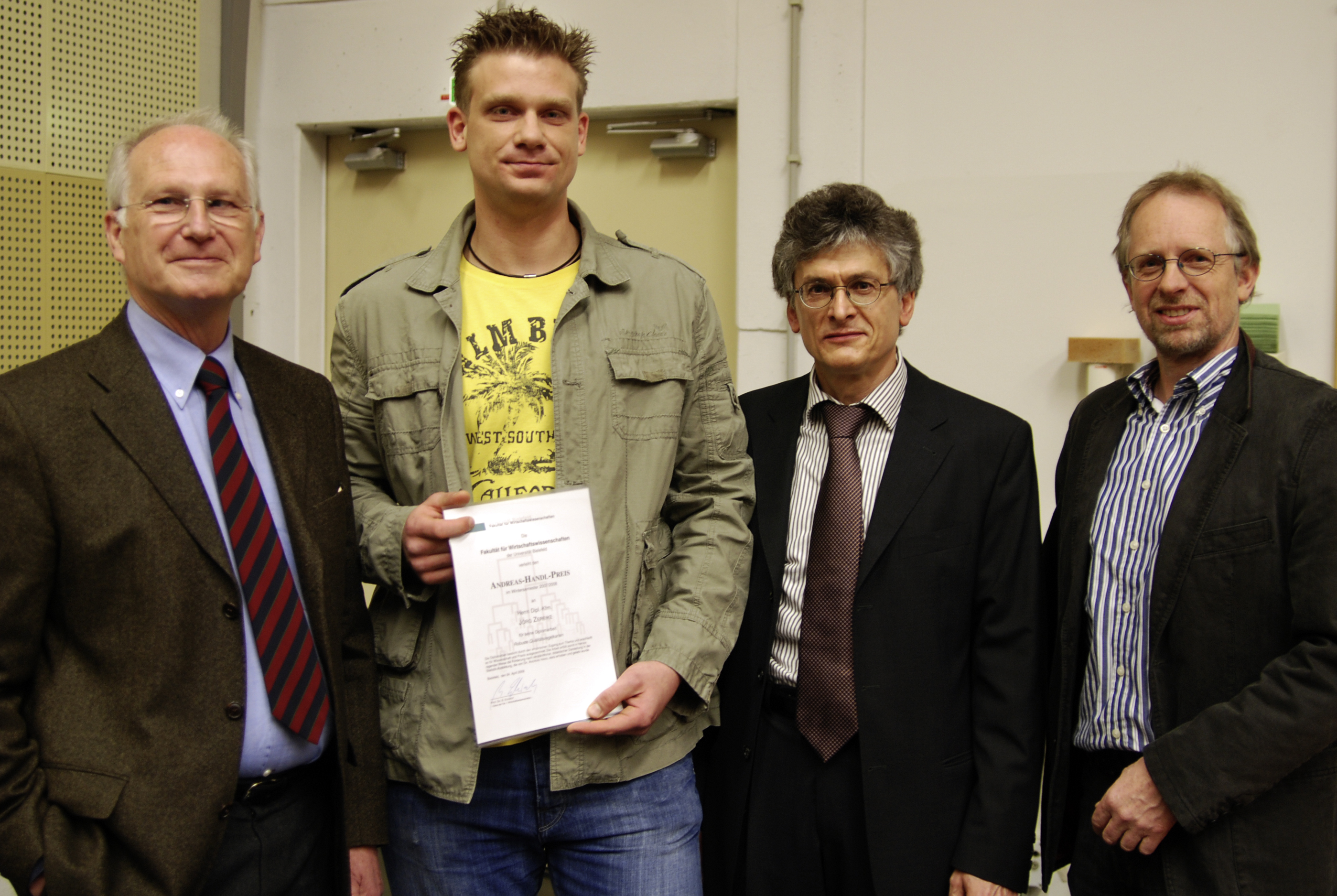 Die Fakultät für Wirtschaftswissenschaften vergab gestern, am 24. April, zum ersten Mal den "Andreas-Handl-Preis". Damit werden Studierende ausgezeichnet, die in den Bereichen Statistik und Ökonometrie besonderes Engagement und sehr gute Leistungen gezeigt haben. Als erster Student erhielt Jörg Zereike den "Andreas-Handl-Preis".