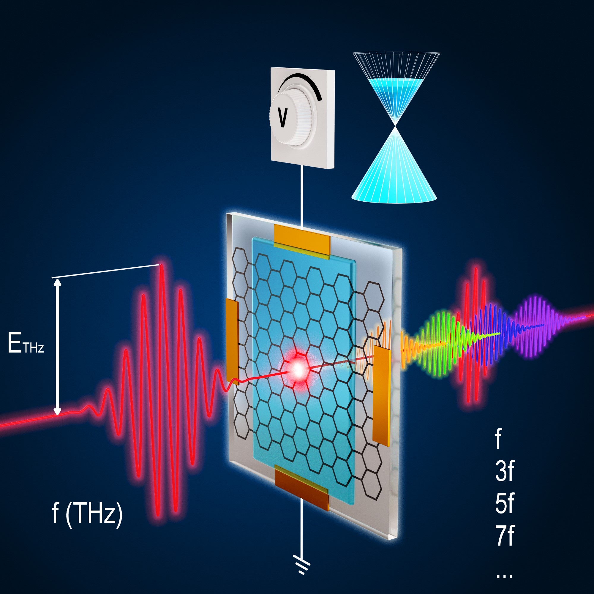 “With this work, we have reached an important milestone on the path towards to using graphene as an extremely efficient nonlinear functional quantum material in devices like THz frequency converters, mixers, and modulators,” says Professor Dr. Michael Gensch from the Institute of Optical Sensor Systems of the German Aerospace Center (DLR) and the Technical University of Berlin, who is the other head of this study. “This is extremely relevant because graphene is perfectly compatible with existing electronic ultrahigh-frequency semiconductor technology such as CMOS or Bi-CMOS. It is therefore now possible to envision hybrid devices in which the initial electric signal is generated at lower frequency using existing semiconductor technology but can then very efficiently be up-converted to much higher THz frequencies in graphene, all in a fully controllable and predictable manner.”