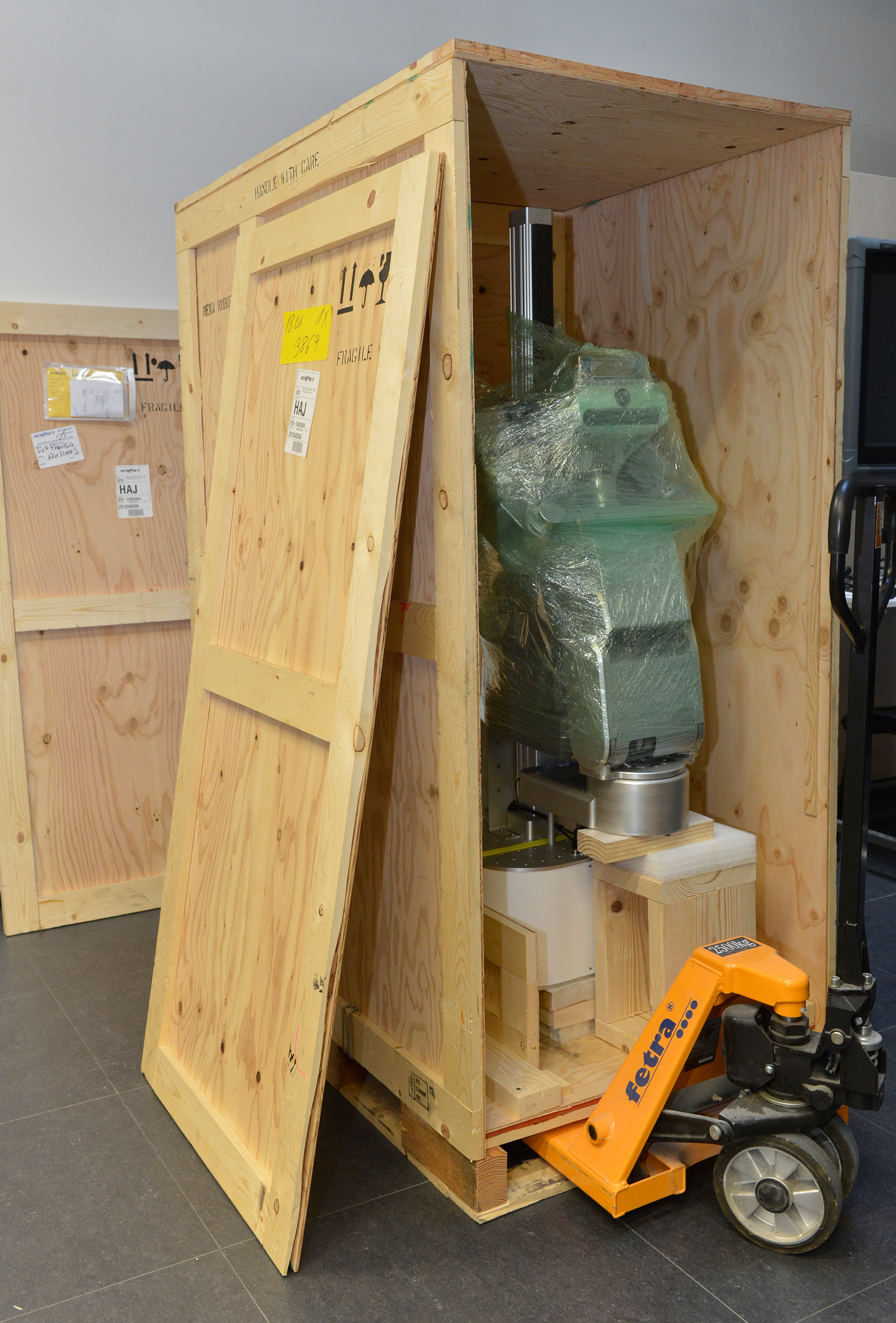 Researchers from the Cluster of Excellence Cognitive Interaction Technology of Bielefeld University are working on a project to develop a socially competent apartment able to support residents in their everyday lives. This project is one of a kind in Germany. Twelve research groups from the research institute are collaborating on this new large project. CITEC has invested around 1.8 million Euros into the project that will run until 2017. An important component of the intelligent apartment has just arrived: a service robot built by Meka Robotics, a company from San Francisco, USA. This week, it moved into the laboratory apartment in the CITEC building at Campus North.