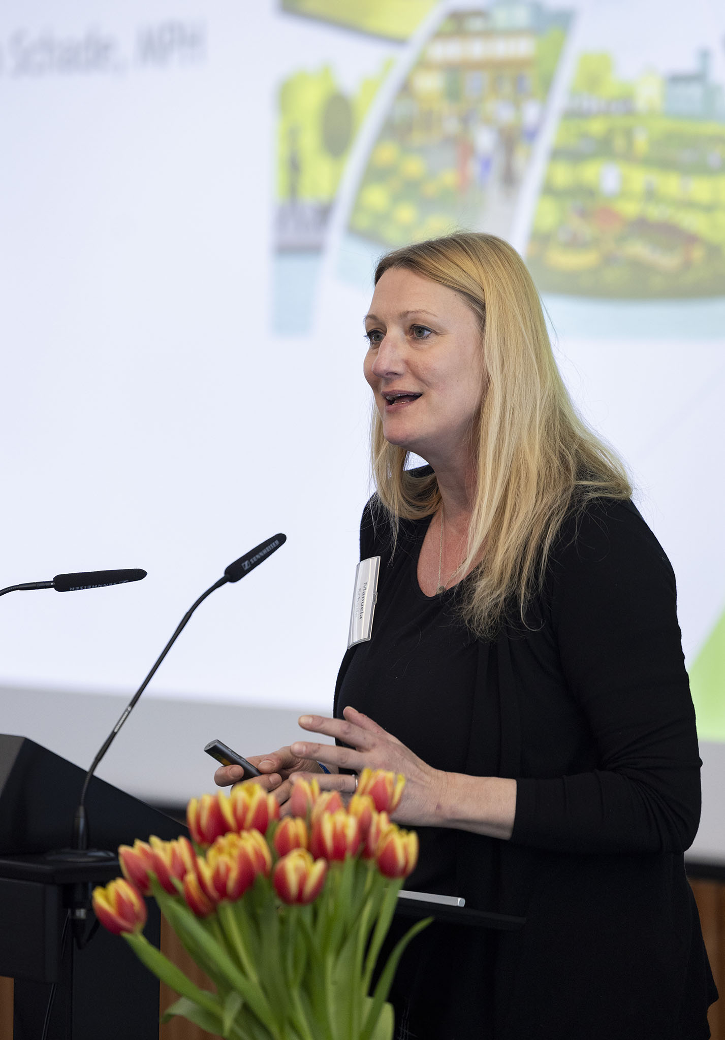 Die Gesundheitswissenschaftlerin Dr. Anette Christ und die Sozialwissenschaftlerin Jana Bauer (beide aus Frankfurt a.M.) betätigten diese Einsicht aus ihren Erfahrungen als Koordinatorinnen des WHO Gesunde-Städte-Netzwerks. In diesem geht es darum, Gesundheit als Querschnittsaufgabe zu fassen die Kommunen ins Zentrum der Gesundheitsförderung zu rücken. Diese könne sich zum Beispiel an den 17 Nachhaltigkeitszielen des Netzwerks orientieren, um sichere, inklusive, nachhaltige und widerstandsfähige Gesellschaften zu bilden, in denen Gesundheit und Wohlbefinden aller im Mittelpunkt stehen.