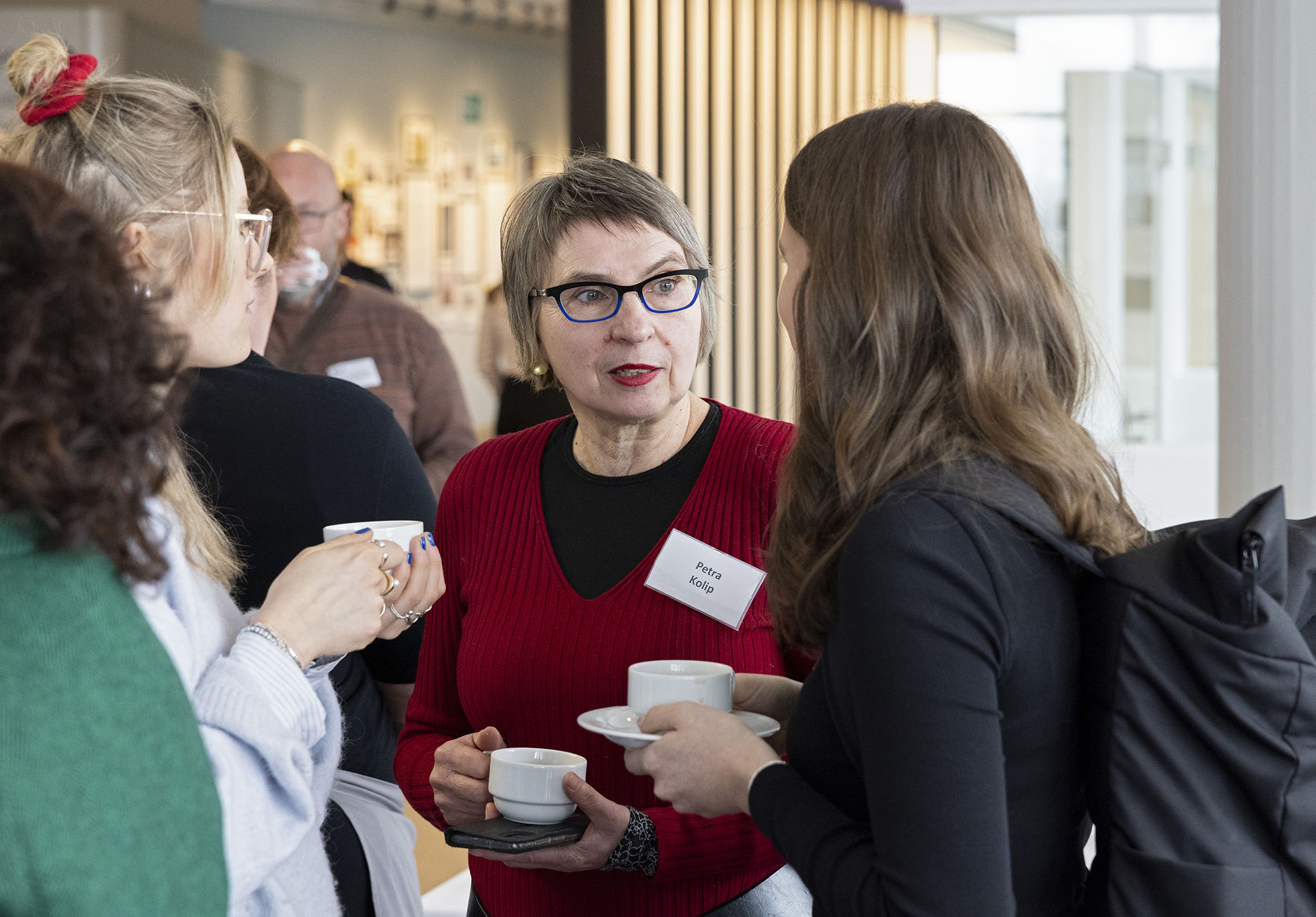 Petra Kolip bei ihrem Vortrag (auf der Folie das "Zwiebelmodell") und im Pausengespräch